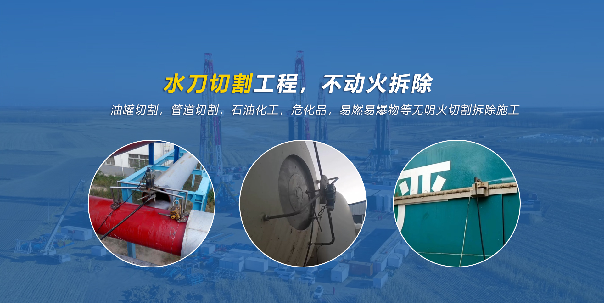 水切設(shè)備施工中無火花,無溫度變化,無靜電,免置換吹掃。以水為刀,切除一切安全隱患!承接礦業(yè),化工,石油,燃?xì)獾雀鞣N危險品,易燃易爆品的切割,廢舊罐體及管道的拆除,打孔,除銹,混凝土切割等作業(yè)。精準(zhǔn)的施工隊伍切割工程遍布全國各地。