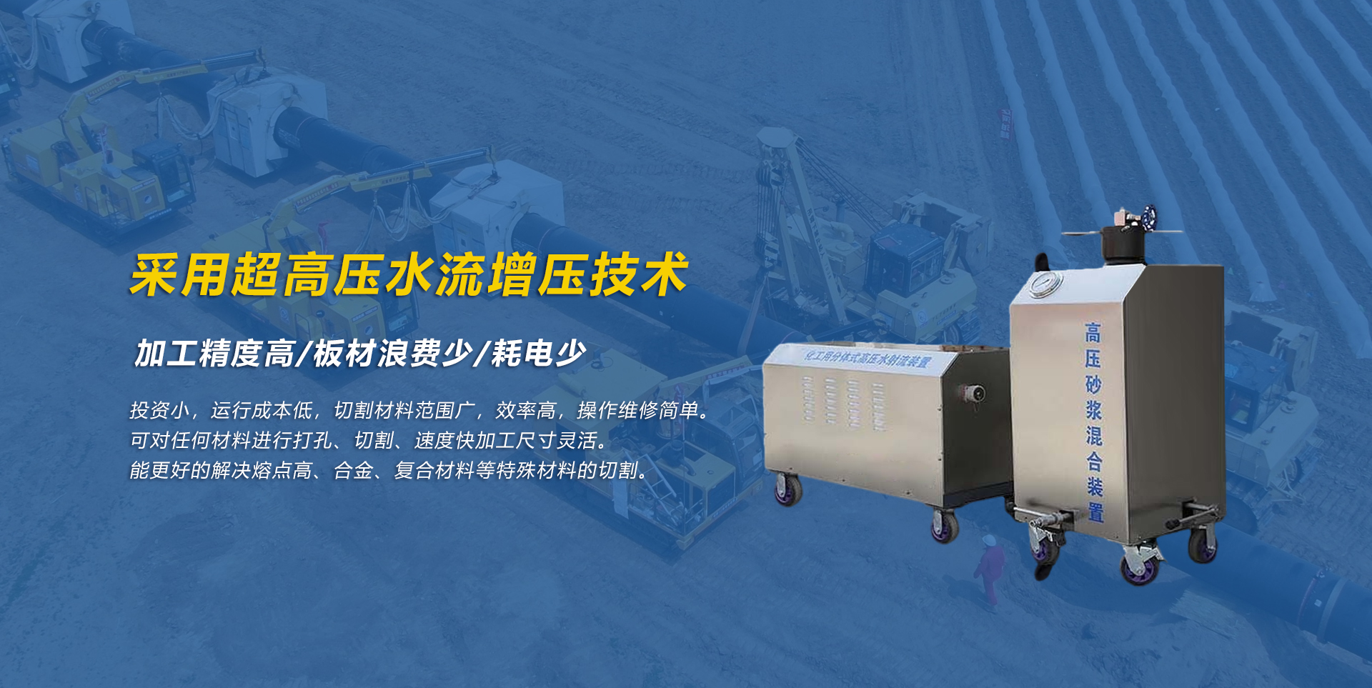 公司的先進(jìn)設(shè)備可以提高施工的速度, 而且擁有的施工水刀切割裝備能降低施工成本; 更重要的是施工團(tuán)隊會根據(jù)地形地勢提供多種解決方案。