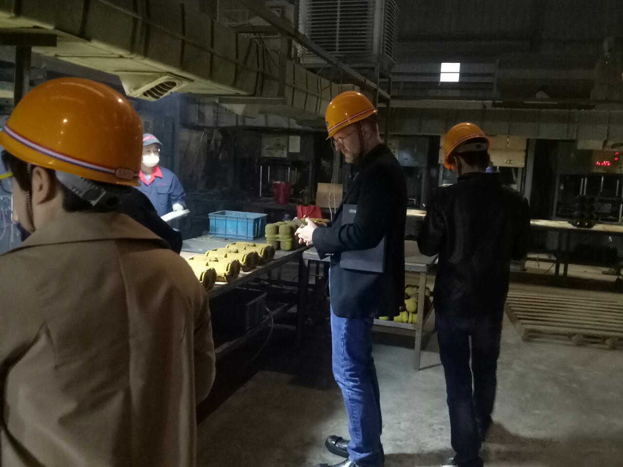 10月22日美國客戶一行4人蒞臨我司工廠,參觀了我工廠電力金具生產(chǎn)澆注車間,射型車間,打磨車間,拋丸車間,半成品檢驗(yàn),倉庫及理化實(shí)驗(yàn)室,以及鍍鋅車間。
